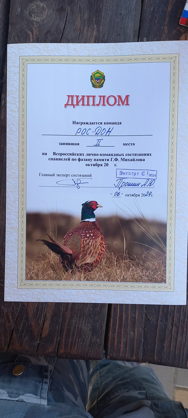 5-6 октября 2024 года, в о/у Багаевского районного общества охотников, прошли Х Всероссийские лично-командные состязания спаниелей по фазану памяти Г.Ф. МИХАЙЛОВА. Эти состязания проводятся на Донской земле не впервые. За прошедшие годы они стали уже традиционными. Всего в состязаниях принял участие 51 участник. В командном зачёте было заявлено 11 команд, представлявших ведущие секции охотничьих спаниелей в РФ. Впервые в этом году для успешного проведения состязаний было сформировано 4 экспертных комиссии. В предыдущие годы на состязаниях такого уровня всегда трудились 3 экспертные комиссии. Главным экспертом состязаний, как и ранее, стал Андрей Юрьевич Прошин (Всероссийская категория, Республика Крым). Экспертные комиссии, в свою очередь, возглавили эксперты I категории Леус О.А., Карлин И.М., Громов А.Ю. и Сенькин О.Б. В состав орг. комитета вошли председатель Багаевской ОООиР Мирошниченко И.В. и практически весь актив секции спаниелей Ростовской области и наши коллеги из МО: Василёнок А.В., Чернокозов С.И., Савенков А.В., Шеин Ю.Ю., Галкин Г.В., Полич Я.А., Денисенко Е.В. и Петрова В.А. Следует отметить, что все, кто вошёл в состав орг. комитета, на протяжении всего периода проведения состязаний пахали, как рабы на галерах, взяв на себя практически всю работу начиная от встречи прибывающих экспертов, обеспечения быта, питания комиссий, сопровождения участников и контроля их выходов в поле и т.д., и т.п. Подъём ежедневно был в 04.30, а отбой около полуночи. И весь день на ногах. Да ещё, являясь участниками состязаний, нужно было и о собаках не забыть, и в поле с ними достойно выступить. Нагрузка на каждого, без всякого преувеличения, была колоссальная. Тем, кто не представляет, что это такое, хочу сказать следующее: каждому, кто работал в этом году, нужно поклониться до земли и поблагодарить за то, что организационный уровень проведения состязаний с минувшем году был не слабее прежних лет. А если объективно, то можно уверенно говорить о том, что в этом годуВсероссийские состязания прошли организованно на более высоком уровне, чем в прежние годы. А далее были состязания, наполненные упорством, эмоциями, накалом страстей, борьбой, радостью и огорчениями от выступления наших питомцев. Были дипломы, баллы, были обсуждения внутри своих команд и за их пределами. Были дружеские посиделки за столом, поздравления и поддержка друзьями. И это, пожалуй, самое дорогое и ценное, что происходит на состязаниях с нашими ушастыми братьями.